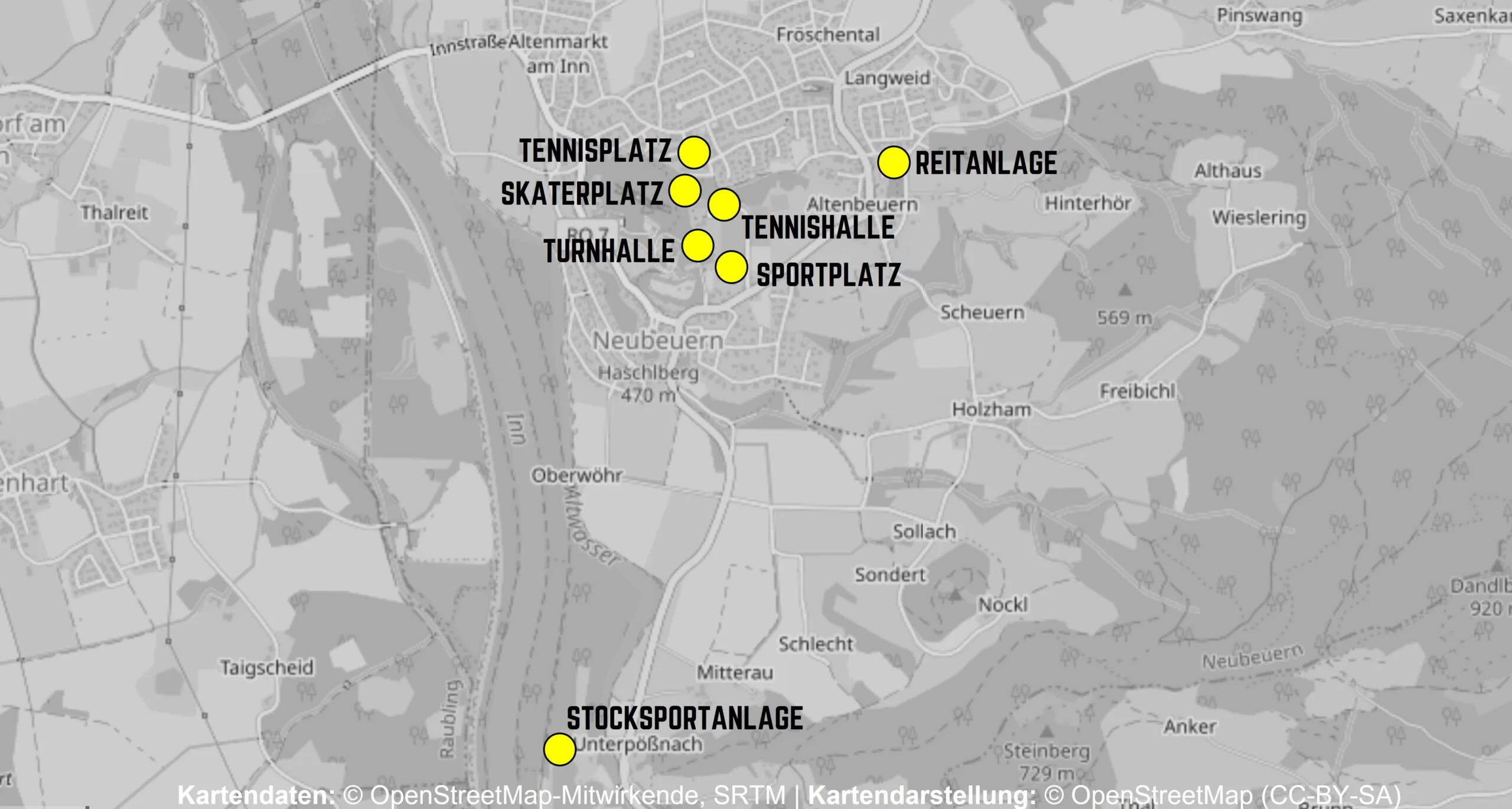 Der TSV Neubeuern ist mit seinen acht Sparten an verschiedenen Sportstätten aktiv. Damit Ihr nicht den Überblick verliert, haben wir hier alle Locations mit ihren Möglichkeiten zusammengefasst.